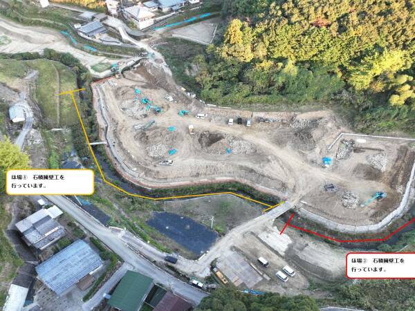 2工区の方は、ほ場③、④の石積擁壁工を進めております。