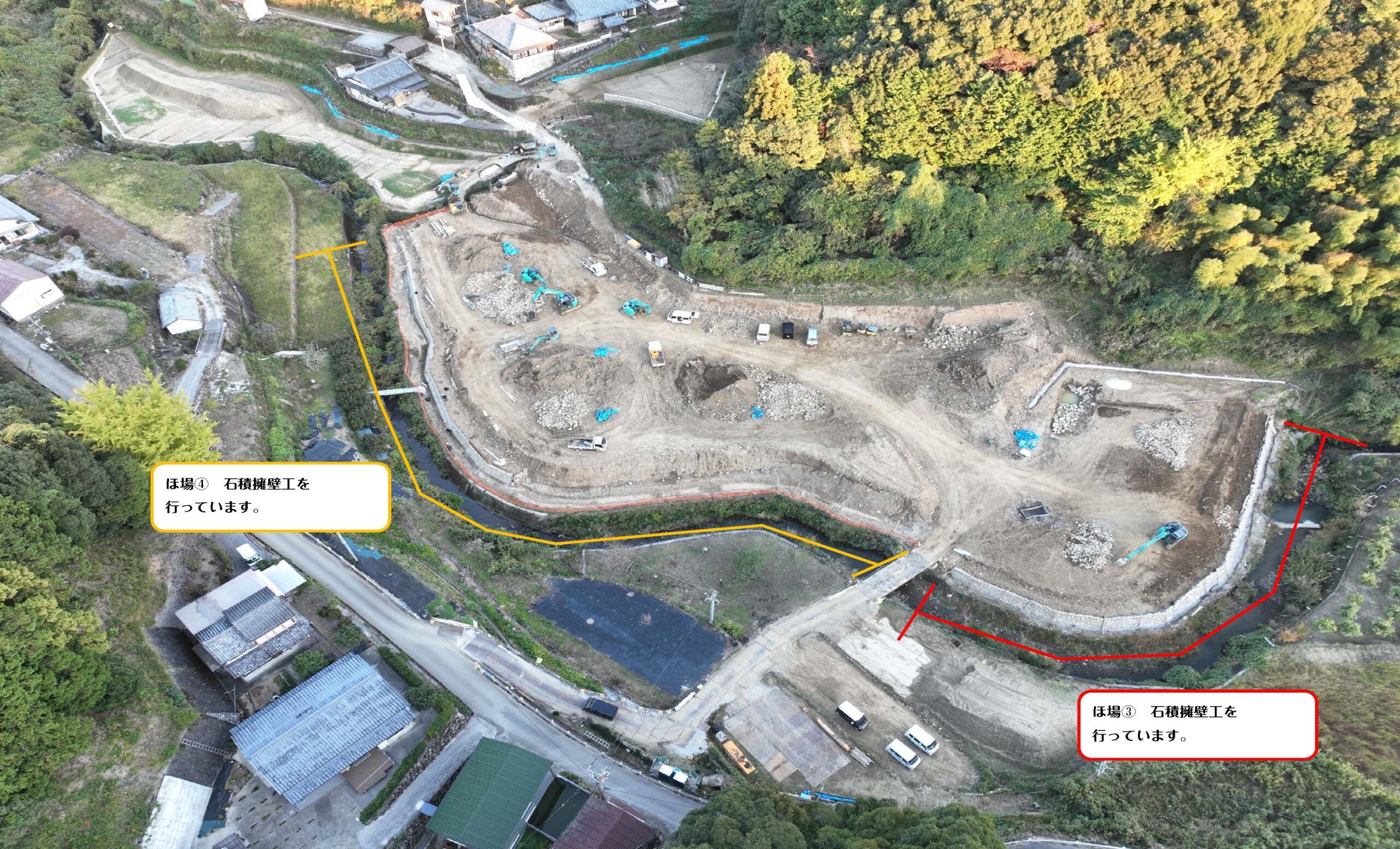 2工区の方は、ほ場③、④の石積擁壁工を進めております。
